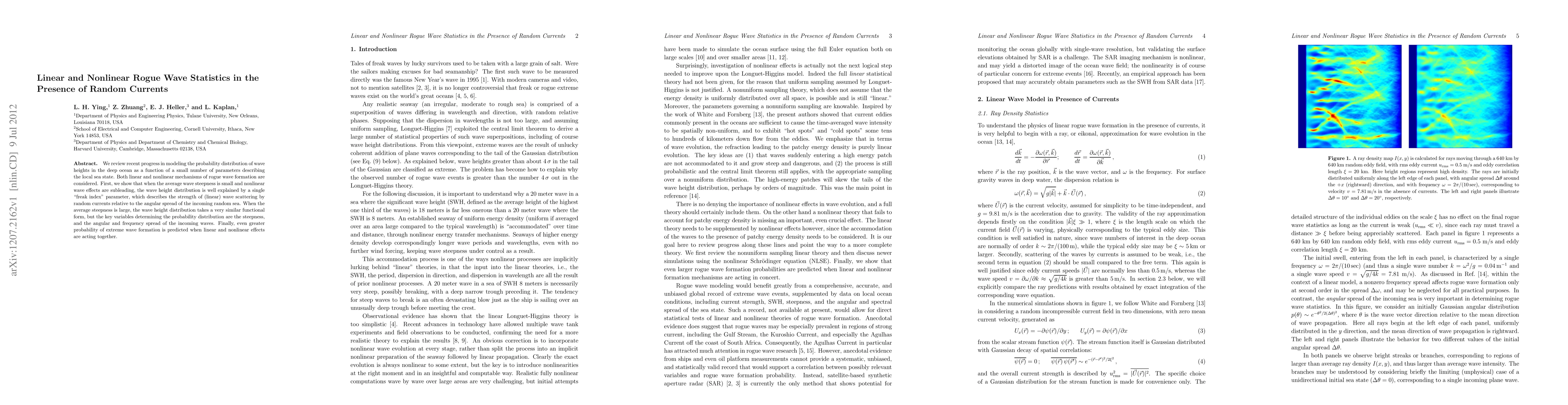 We review recent progress in modeling the probability distribution of wave heights in the deep ocean as a function of a small number of parameters describing the local sea state. Both linear and nonlinear mechanisms of rogue wave formation are considered. First, we show that when the average wave steepness is small and nonlinear wave effects are subleading, the wave height distribution is well explained by a single "freak index" parameter, which describes the strength of (linear) wave scattering by random currents relative to the angular spread of the incoming random sea. When the average steepness is large, the wave height distribution takes a very similar functional form, but the key variables determining the probability distribution are the steepness, and the angular and frequency spread of the incoming waves. Finally, even greater probability of extreme wave formation is predicted when linear and nonlinear effects are acting together.