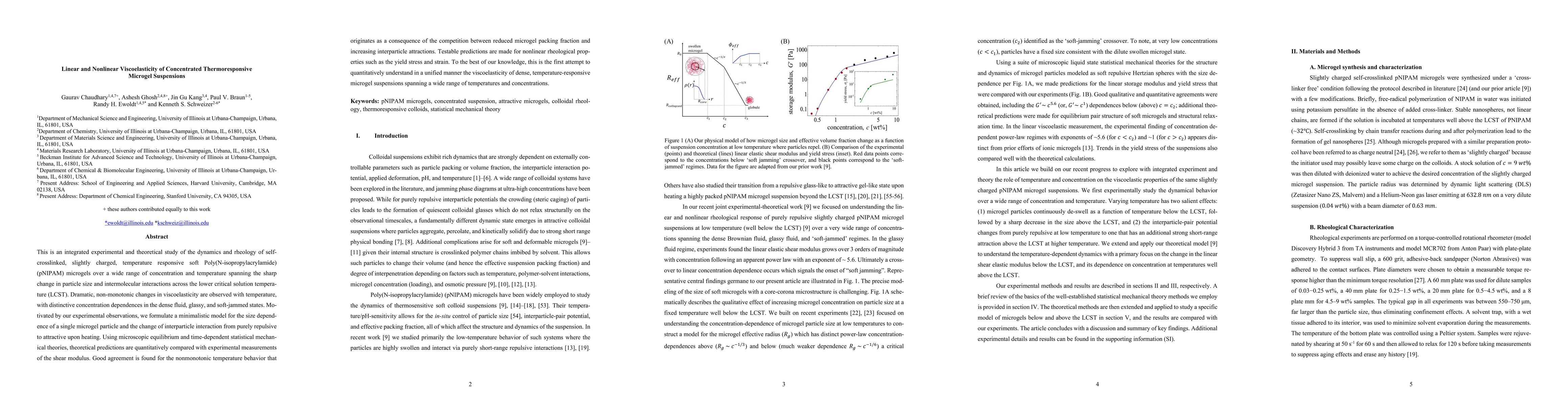 This study experimentally and theoretically investigates the viscoelastic behavior of concentrated thermoresponsive microgel suspensions, revealing dramatic, non-monotonic changes in viscoelasticity with temperature and concentration, and proposing a model to explain these phenomena based on microgel size and interparticle interactions. The theoretical predictions align well with experimental measurements, providing insights into nonlinear rheological properties.