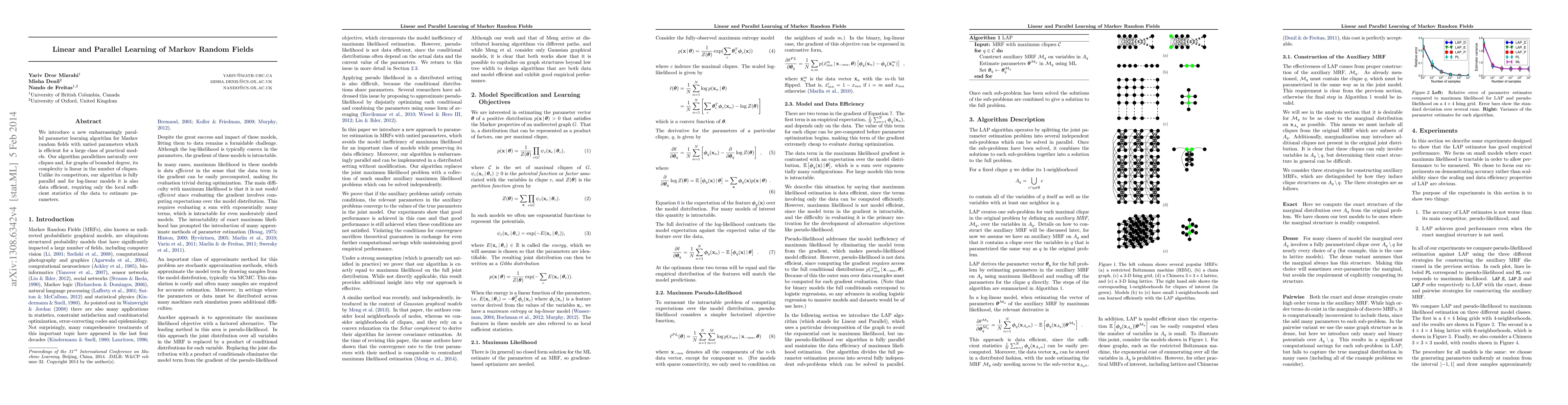 Researchers introduced a new algorithm for learning Markov random fields with untied parameters that is efficient and parallelizable over cliques, making it suitable for large models. The algorithm requires only local data statistics to estimate parameters, offering improved efficiency for log-linear models.