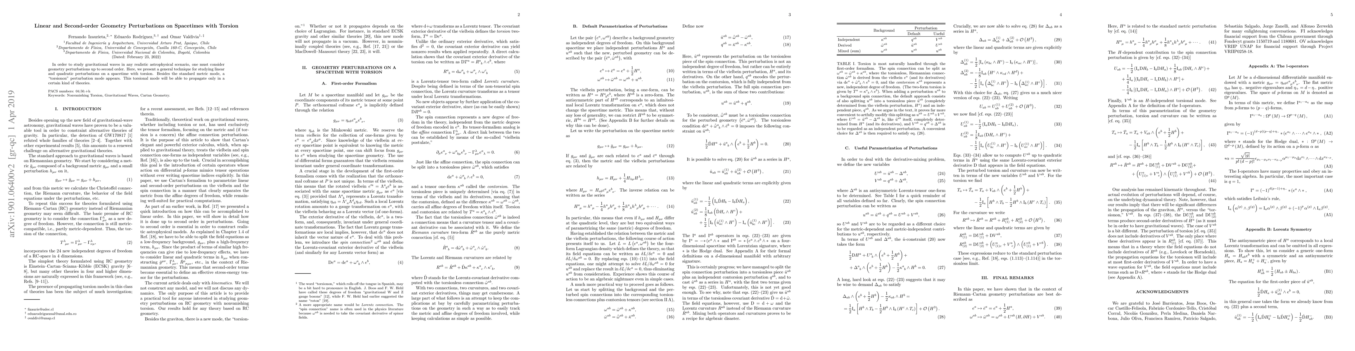 In order to study gravitational waves in any realistic astrophysical scenario, one must consider geometry perturbations up to second order. Here, we present a general technique for studying linear and quadratic perturbations on a spacetime with torsion. Besides the standard metric mode, a "torsionon" perturbation mode appears. This torsional mode will be able to propagate only in a certain kind of theories.