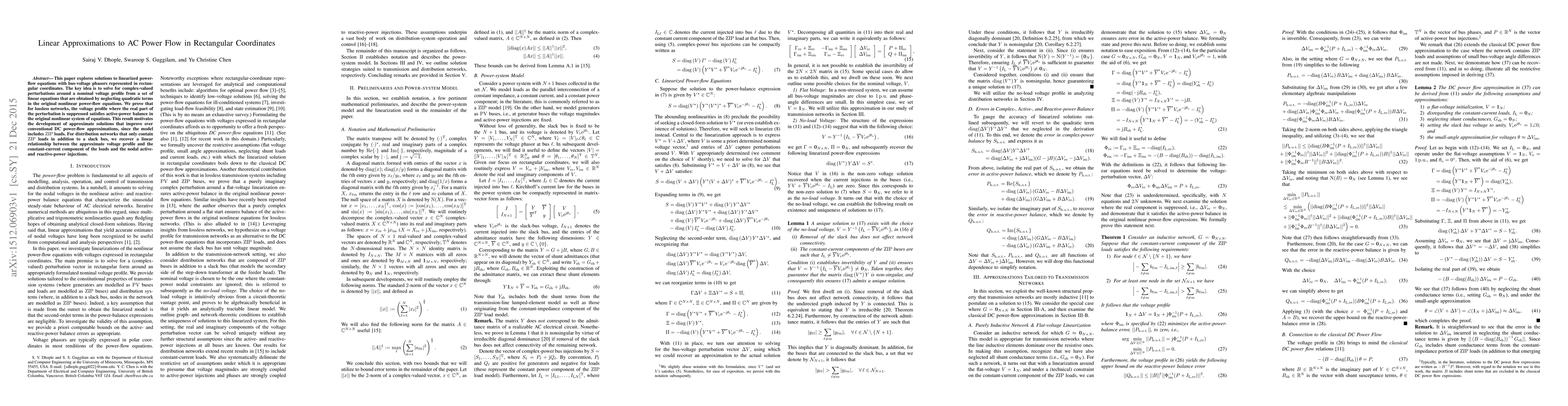 Researchers developed linear approximations for AC power flow in rectangular coordinates, improving over conventional DC power-flow approximations, especially for networks with ZIP loads.