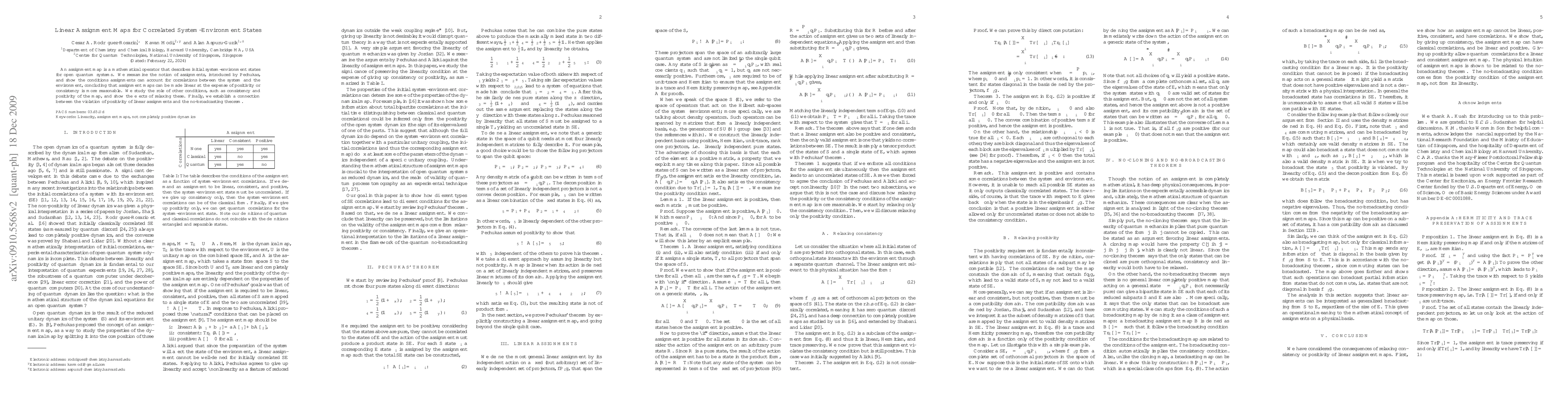 An assignment map is a mathematical operator that describes initial system-environment states for open quantum systems. We reexamine the notion of assignments, introduced by Pechukas, and show the conditions assignments can account for correlations between the system and the environment, concluding that assignment maps can be made linear at the expense of positivity or consistency is more reasonable. We study the role of other conditions, such as consistency and positivity of the map, and show the effects of relaxing these. Finally, we establish a connection between the violation of positivity of linear assignments and the no-broadcasting theorem.