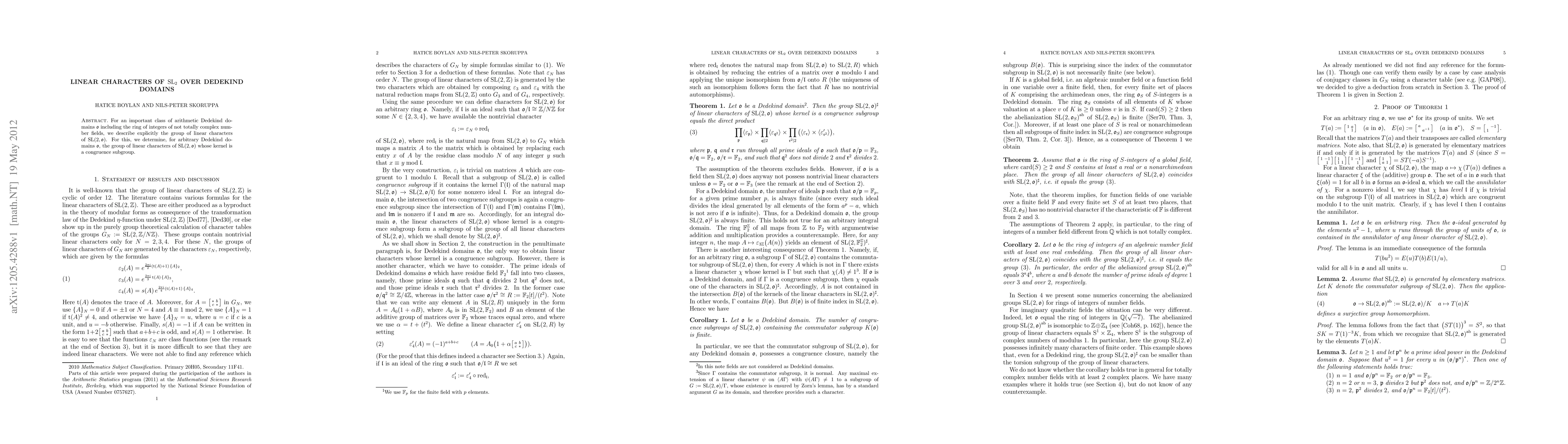 The research used a combination of theoretical and computational methods to study linearcharactersofSL2overDedekindring.