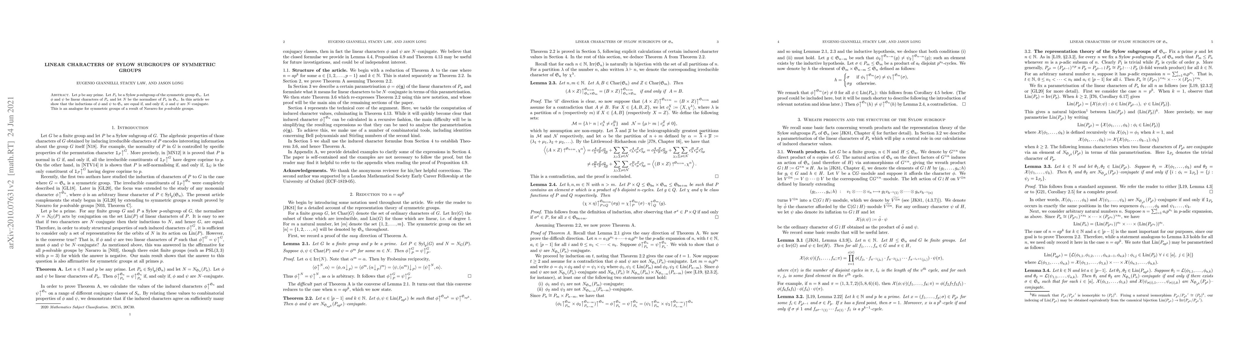 This research establishes that for symmetric groups, linear characters of Sylow p-subgroups are equal as inductions to the full symmetric group if, and only if, they are conjugate under the normaliser of the Sylow p-subgroup. This finding parallels a previous result for p-solvable groups.