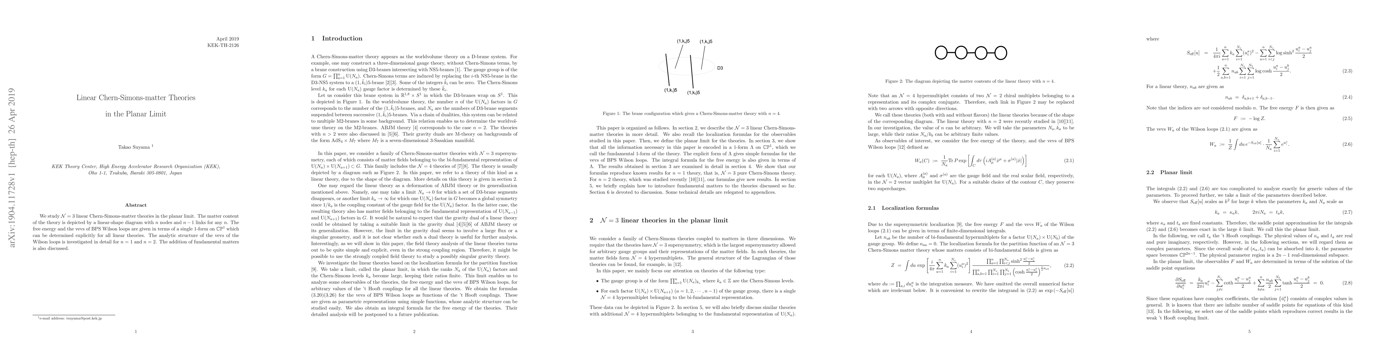 The research provides new insights into linear Chern-Simons-matter theories and their planar limit.