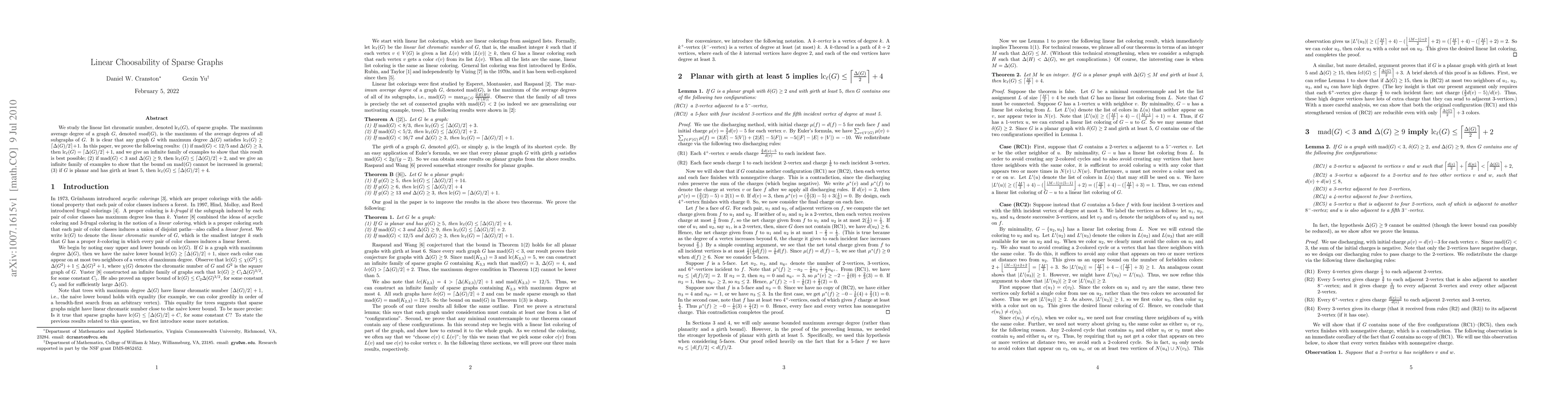 This paper investigates the linear list chromatic number of sparse graphs, proving specific bounds for average degree and maximum degree conditions, with implications for coloring and graph planarity.