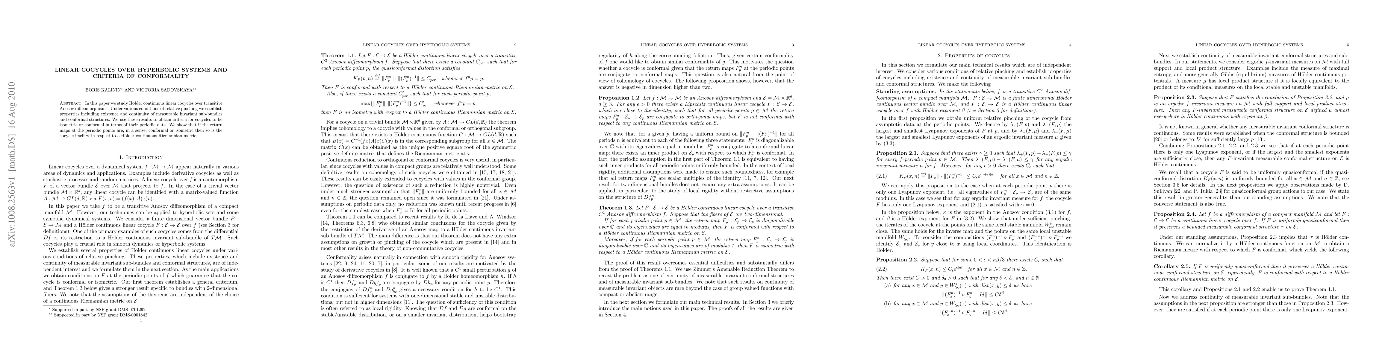 In this paper we study Holder continuous linear cocycles over transitive Anosov diffeomorphisms. Under various conditions of relative pinching we establish properties including existence and continuity of measurable invariant sub-bundles and conformal structures. We use these results to obtain criteria for cocycles to be isometric or conformal in terms of their periodic data. We show that if the return maps at the periodic points are, in a sense, conformal or isometric then so is the cocycle itself with respect to a Holder continuous Riemannian metric.