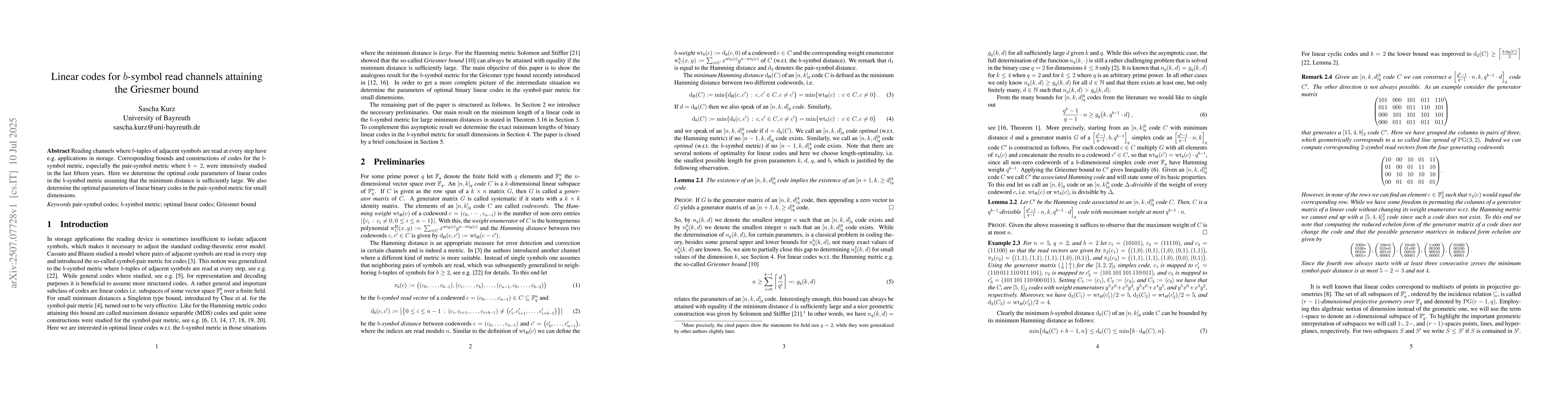 Reading channels where $b$-tuples of adjacent symbols are read at every step have e.g.\ applications in storage. Corresponding bounds and constructions of codes for the $b$-symbol metric, especially the pair-symbol metric where $b=2$, were intensively studied in the last fifteen years. Here we determine the optimal code parameters of linear codes in the $b$-symbol metric assuming that the minimum distance is sufficiently large. We also determine the optimal parameters of linear binary codes in the pair-symbol metric for small dimensions.