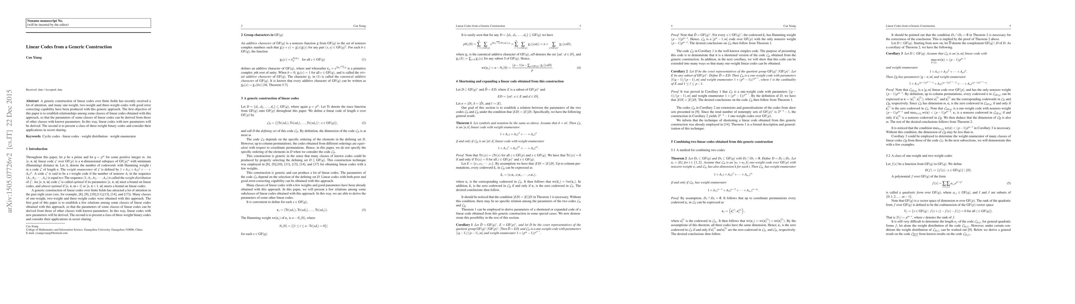 A generic construction of linear codes over finite fields has recently received a lot of attention, and many one-weight, two-weight and three-weight codes with good error correcting capability have been produced with this generic approach. The first objective of this paper is to establish relationships among some classes of linear codes obtained with this approach, so that the parameters of some classes of linear codes can be derived from those of other classes with known parameters. In this way, linear codes with new parameters will be derived. The second is to present a class of three-weight binary codes and consider their applications in secret sharing.