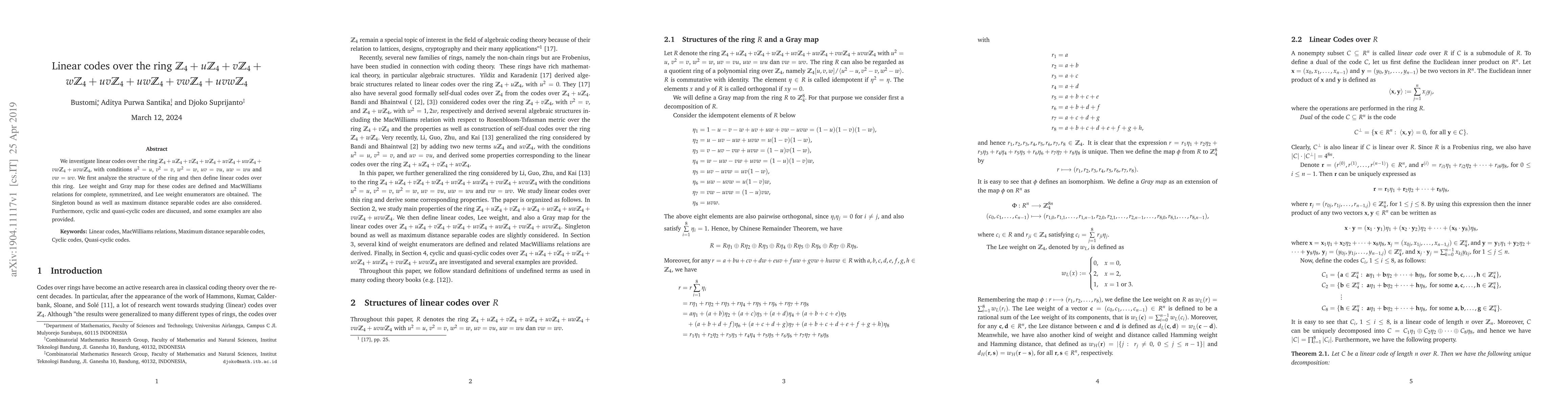 This paper studies linear codes over the ring $\mathbb{Z}_4 + u\mathbb{Z}_4 + v\mathbb{Z}_4 + w\mathbb{Z}_4 + \ldots + uvw\mathbb{Z}_4$, analyzing its structure and defining linear codes, Lee weight, and Gray map, and deriving MacWilliams relations and Singleton bound. It also explores cyclic and quasi-cyclic codes with examples.