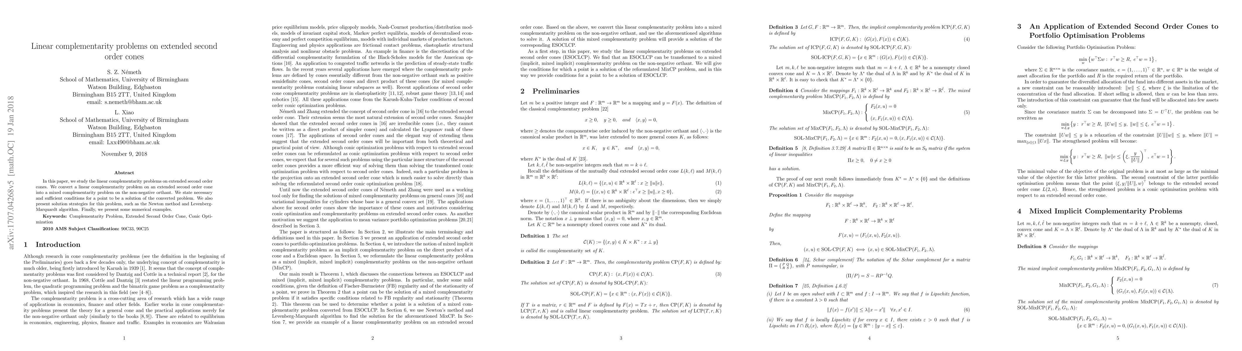 This paper investigates linear complementarity problems on extended second order cones, converting them into mixed complementarity problems and presenting necessary and sufficient conditions for solutions. It introduces solution strategies like the Newton method and Levenberg-Marquardt algorithm, followed by numerical examples.