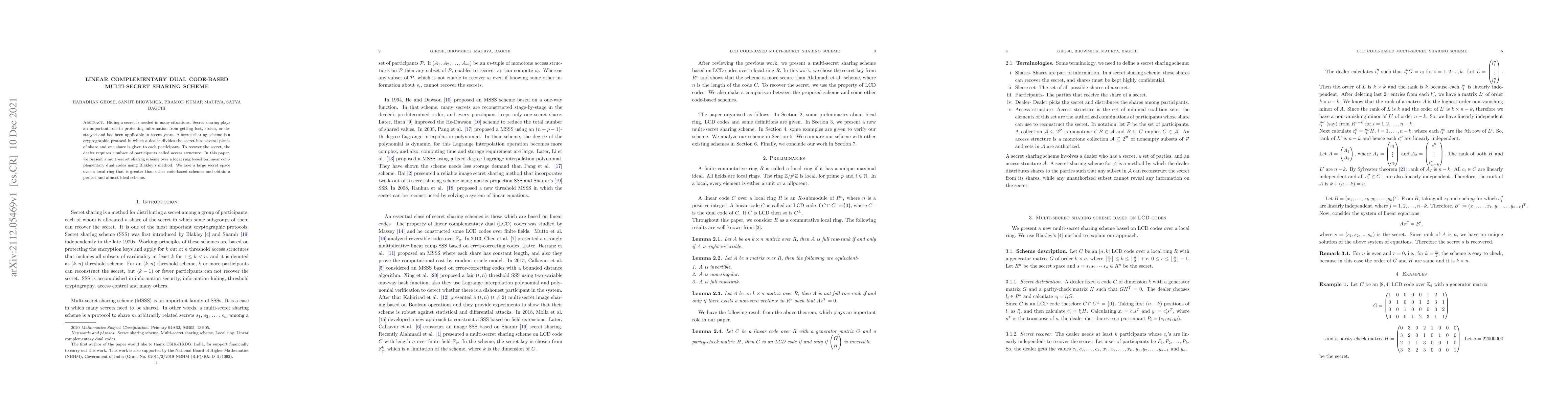 A new multi-secret sharing scheme based on LCD codes over a local ring is proposed, which improves upon existing schemes by increasing the size of the secret space and improving the information rate.