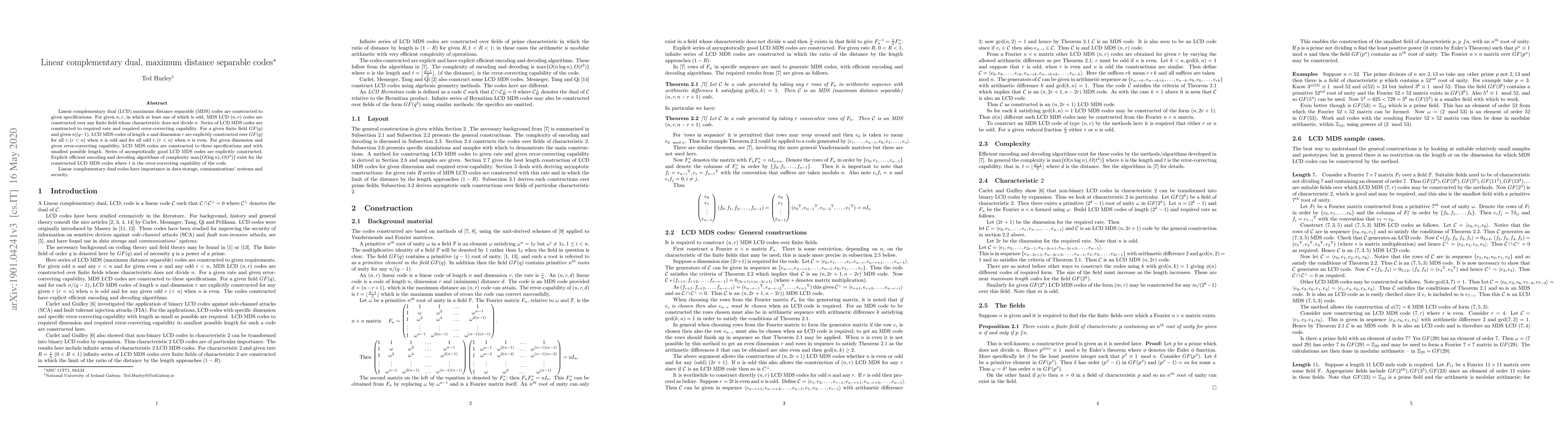 The research constructs efficient encoding and decoding algorithms for LCD MDS codes.