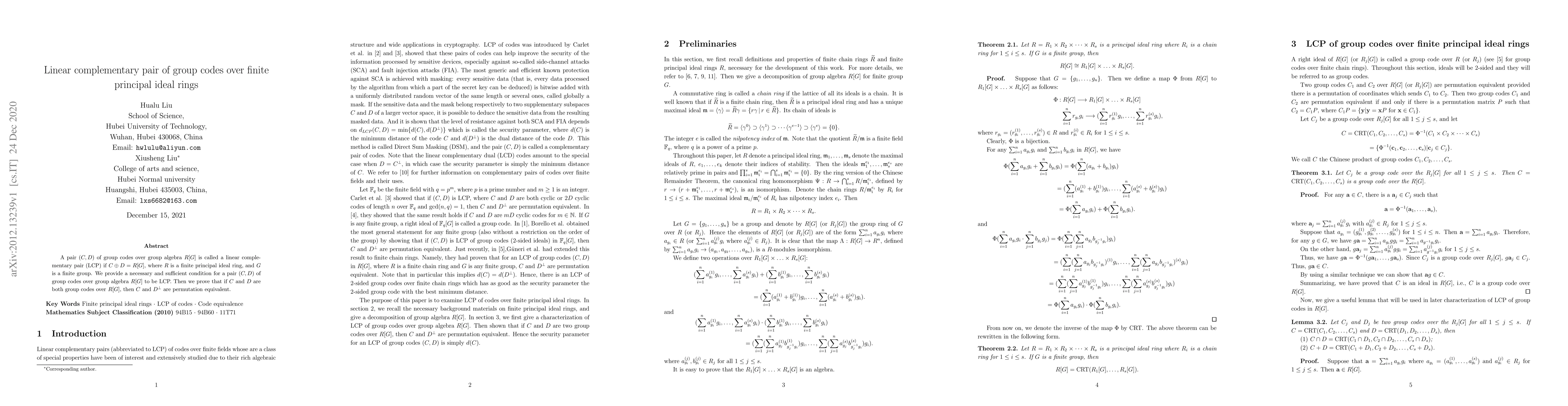 This paper establishes a necessary and sufficient condition for a pair of group codes over a finite principal ideal ring to form a linear complementary pair. It also proves that if both codes are group codes, their orthogonal complements are permutation equivalent.