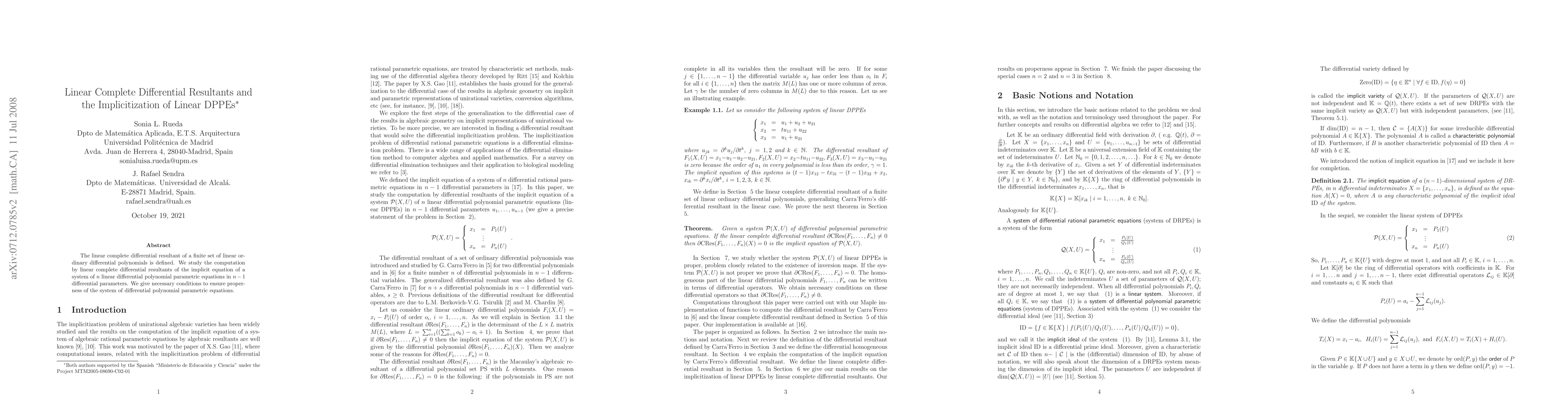 The linear complete differential resultant of a finite set of linear ordinary differential polynomials is defined. We study the computation by linear complete differential resultants of the implicit equation of a system of $n$ linear differential polynomial parametric equations in $n-1$ differential parameters. We give necessary conditions to ensure properness of the system of differential polynomial parametric equations.
