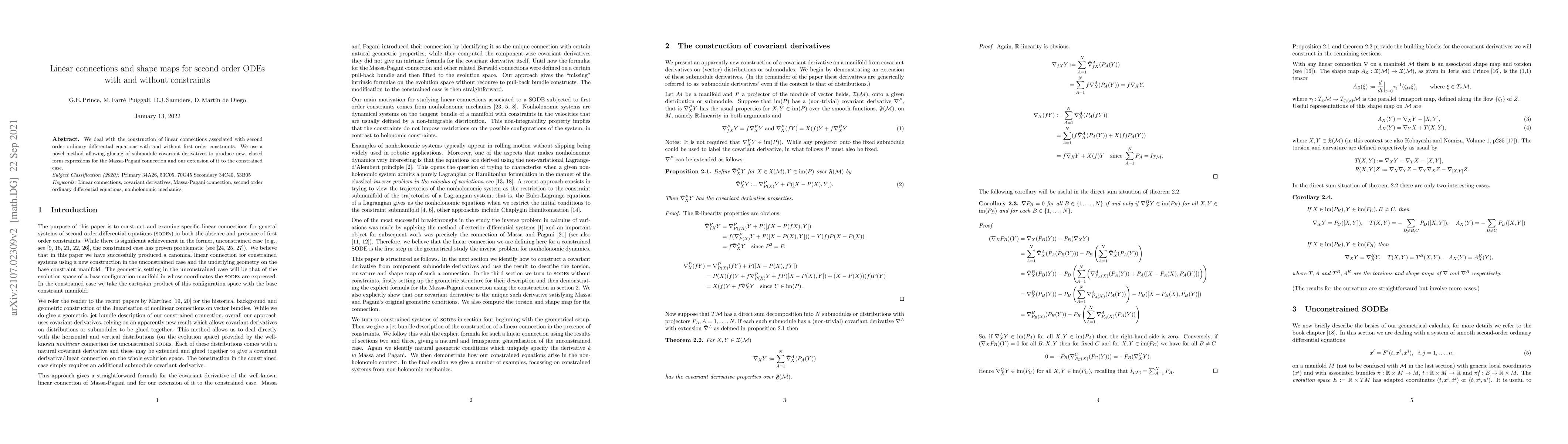 We deal with the construction of linear connections associated with second order ordinary differential equations with and without first order constraints. We use a novel method allowing glueing of submodule covariant derivatives to produce new, closed form expressions for the Massa-Pagani connection and our extension of it to the constrained case.