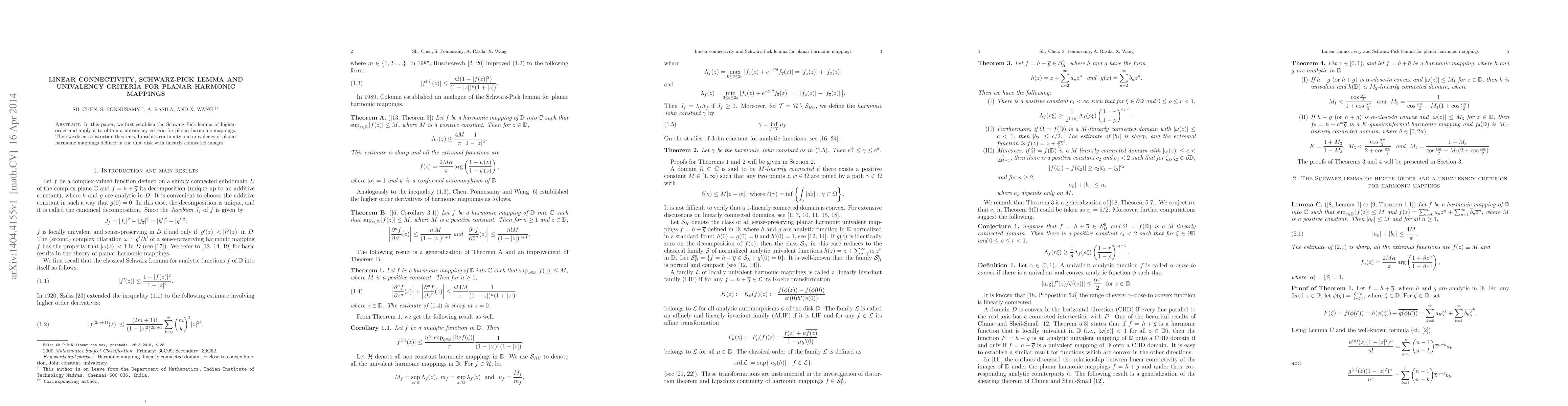Summary: This paper establishes a higher-order Schwarz-Pick lemma and applies it to derive a univalency criterion for planar harmonic mappings. It also explores distortion theorems, Lipschitz continuity, and univalency properties for harmonic mappings with linearly connected images in the unit disk.