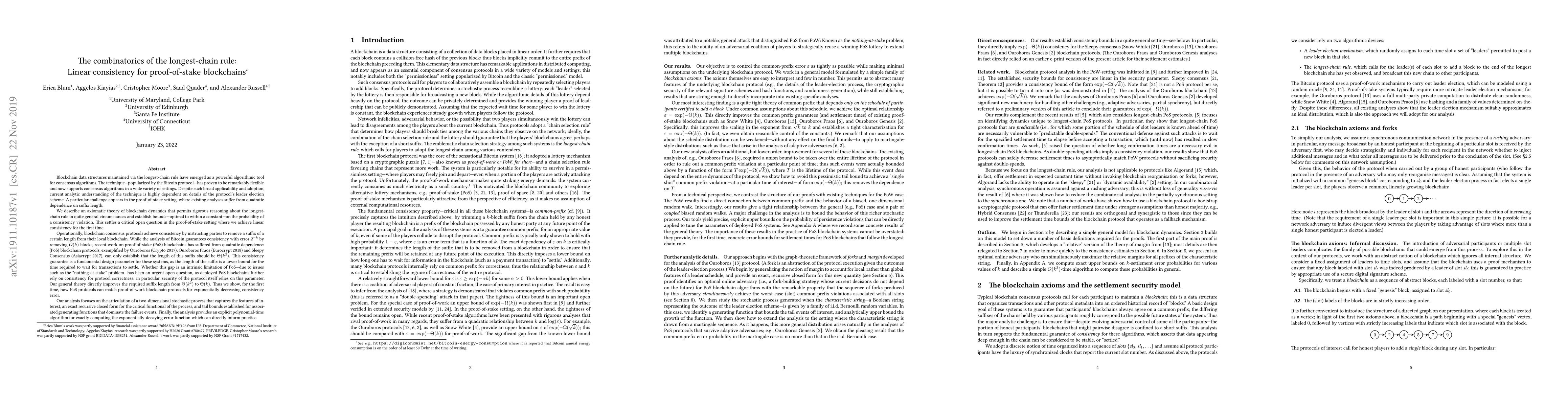 The blockchain data structure maintained via the longest-chain rule---popularized by Bitcoin---is a powerful algorithmic tool for consensus algorithms. Such algorithms achieve consistency for blocks in the chain as a function of their depth from the end of the chain. While the analysis of Bitcoin guarantees consistency with error $2^{-k}$ for blocks of depth $O(k)$, the state-of-the-art of proof-of-stake (PoS) blockchains suffers from a quadratic dependence on $k$: these protocols, exemplified by Ouroboros (Crypto 2017), Ouroboros Praos (Eurocrypt 2018) and Sleepy Consensus (Asiacrypt 2017), can only establish that depth $\Theta(k^2)$ is sufficient. Whether this quadratic gap is an intrinsic limitation of PoS---due to issues such as the nothing-at-stake problem---has been an urgent open question, as deployed PoS blockchains further rely on consistency for protocol correctness. We give an axiomatic theory of blockchain dynamics that permits rigorous reasoning about the longest-chain rule and achieve, in broad generality, $\Theta(k)$ dependence on depth in order to achieve consistency error $2^{-k}$. In particular, for the first time, we show that PoS protocols can match proof-of-work protocols for linear consistency. We analyze the associated stochastic process, give a recursive relation for the critical functionals of this process, and derive tail bounds in both i.i.d. and martingale settings via associated generating functions.