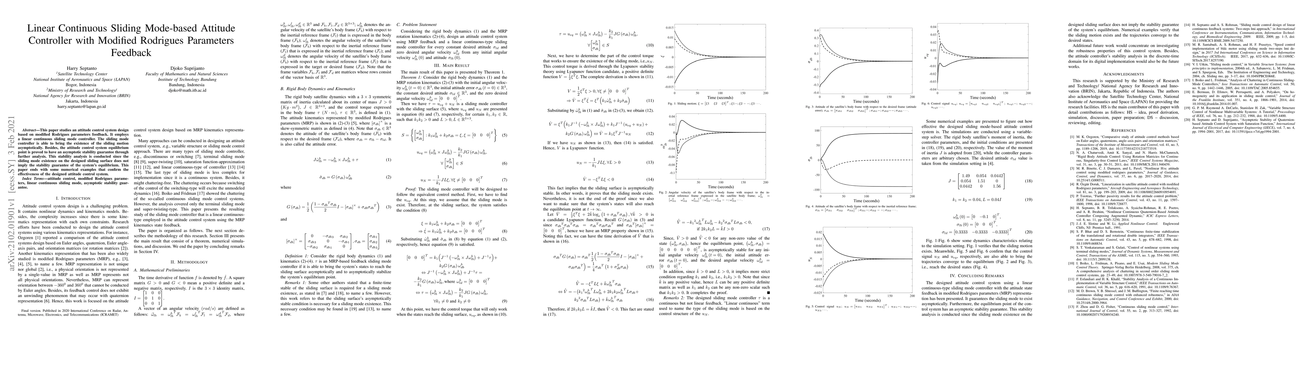 A comprehensive analysis of sliding mode control techniques was performed to design a robust attitude controller for satellite systems.