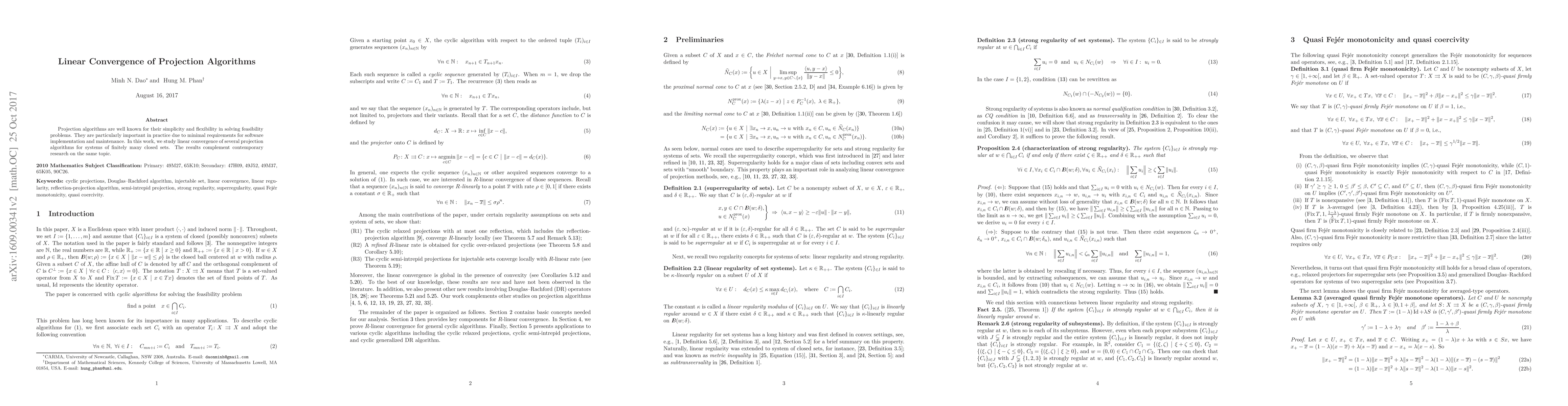 This paper investigates the linear convergence of projection algorithms for solving feasibility problems with minimal requirements, providing new insights into their performance.