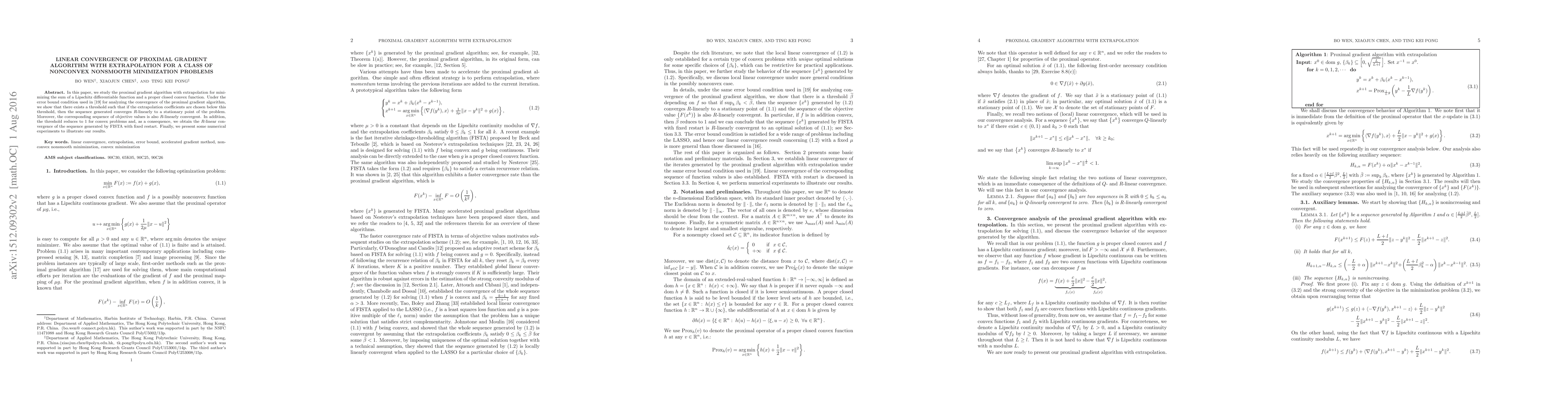 This paper demonstrates the $R$-linear convergence of the proximal gradient algorithm with extrapolation for nonconvex nonsmooth optimization problems. It shows that choosing extrapolation coefficients below a certain threshold ensures convergence to a stationary point, with both the sequence and objective values converging linearly.