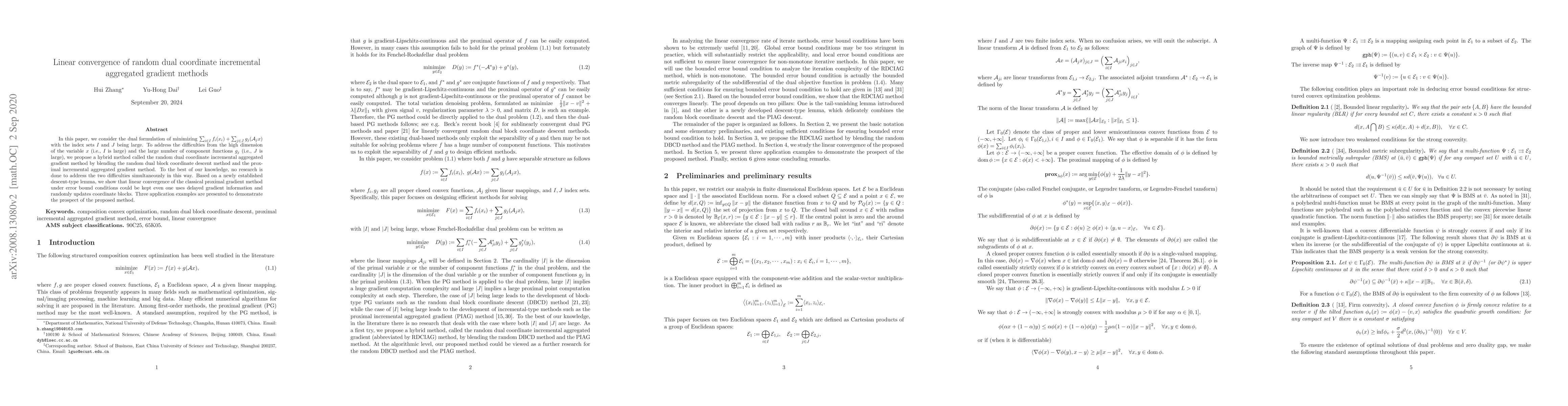 This paper proposes a novel random dual coordinate incremental aggregated gradient method to address the challenges of high-dimensional variables and numerous component functions in optimization problems. It demonstrates linear convergence by blending random dual block coordinate descent and proximal incremental aggregated gradient methods, supported by a new descent-type lemma.