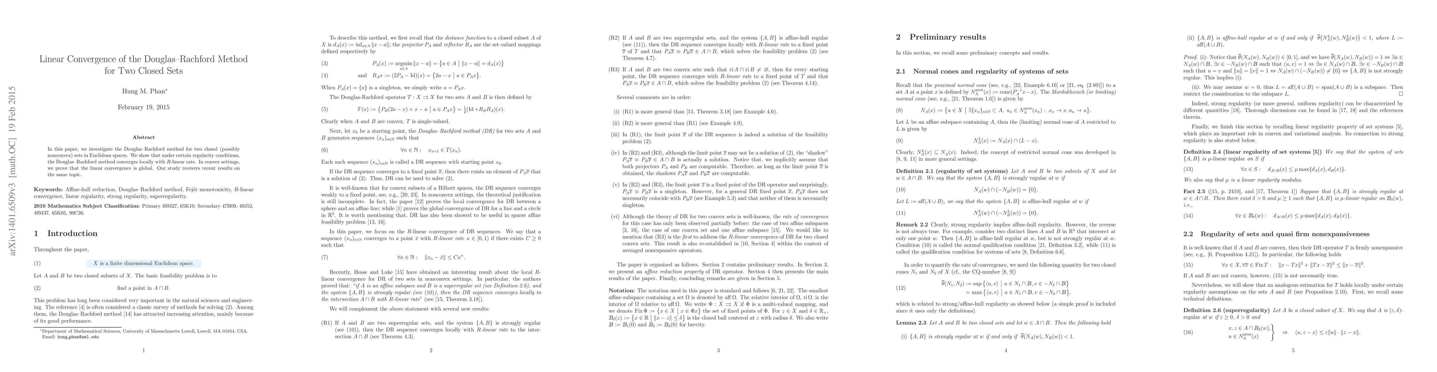 This paper demonstrates the local R-linear convergence of the Douglas-Rachford method for solving problems involving two closed sets in Euclidean spaces, provided certain regularity conditions are met. In convex settings, it proves global linear convergence.