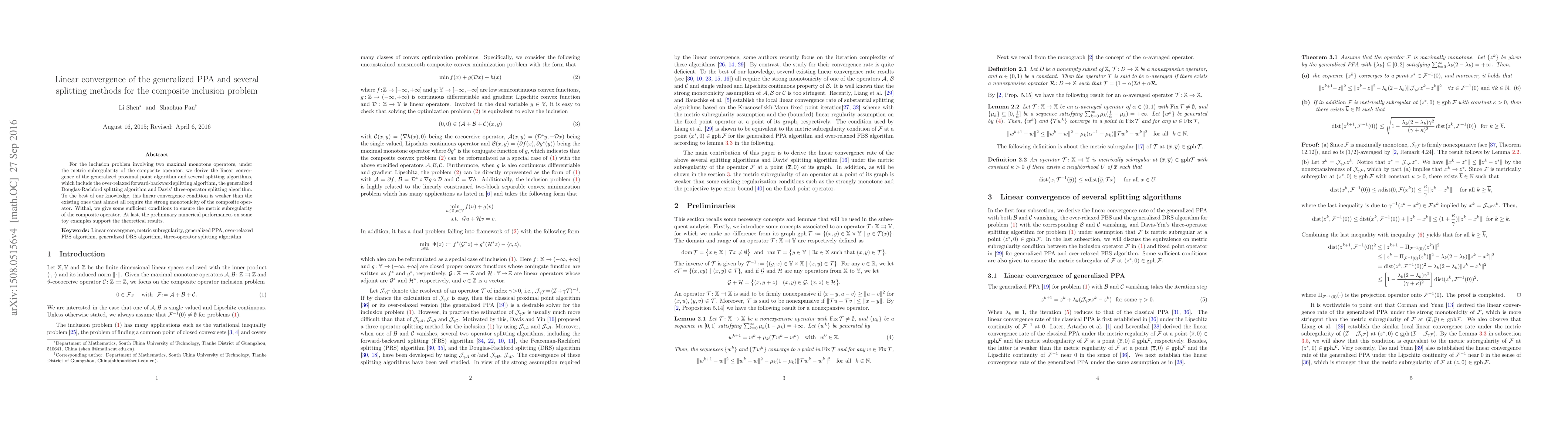 This paper demonstrates the linear convergence of the generalized proximal point algorithm and several splitting methods for solving the composite inclusion problem, under weaker conditions than previously required. It provides sufficient conditions for metric subregularity and supports the theoretical results with preliminary numerical examples.