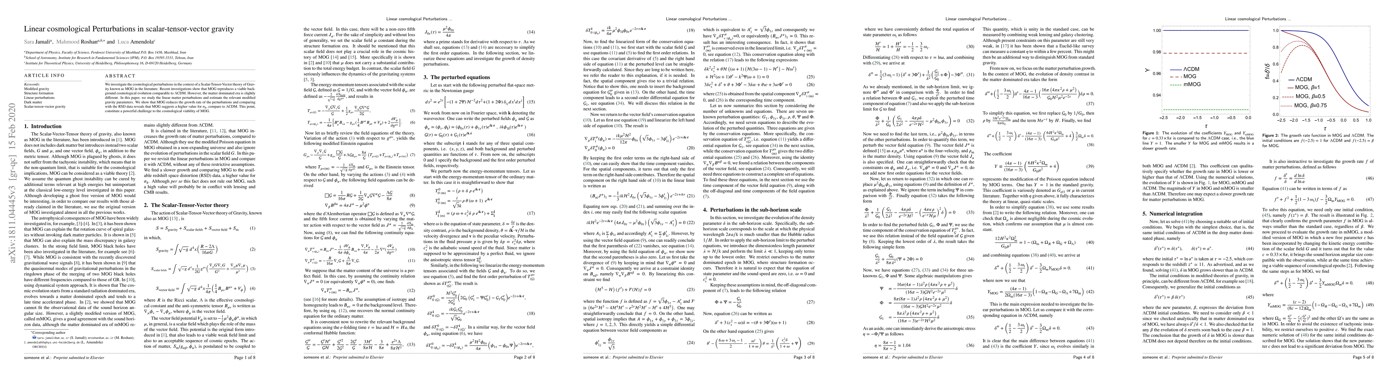 This paper examines linear cosmological perturbations in the Scalar-Tensor-Vector gravity theory known as MOG, finding that it modifies the growth rate of perturbations and suggests a higher value for $\sigma_8$ compared to $\Lambda$CDM, posing a challenge to MOG's cosmological viability.