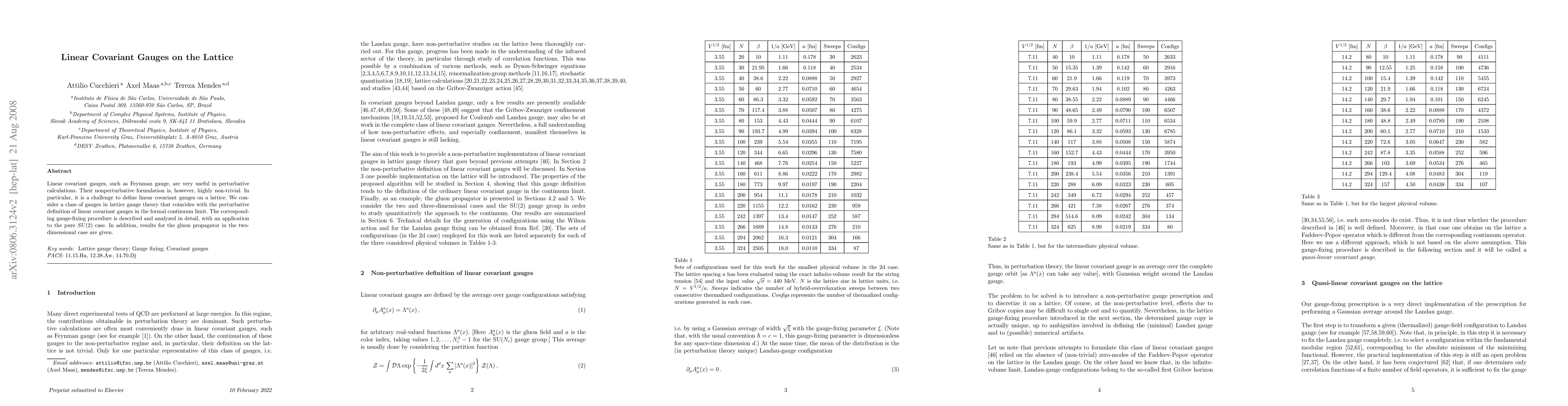This paper explores the formulation of linear covariant gauges on a lattice in lattice gauge theory, presenting a gauge-fixing procedure that aligns with perturbative definitions in the continuum limit, and applies this to SU(2) case, with results for the gluon propagator in two dimensions.