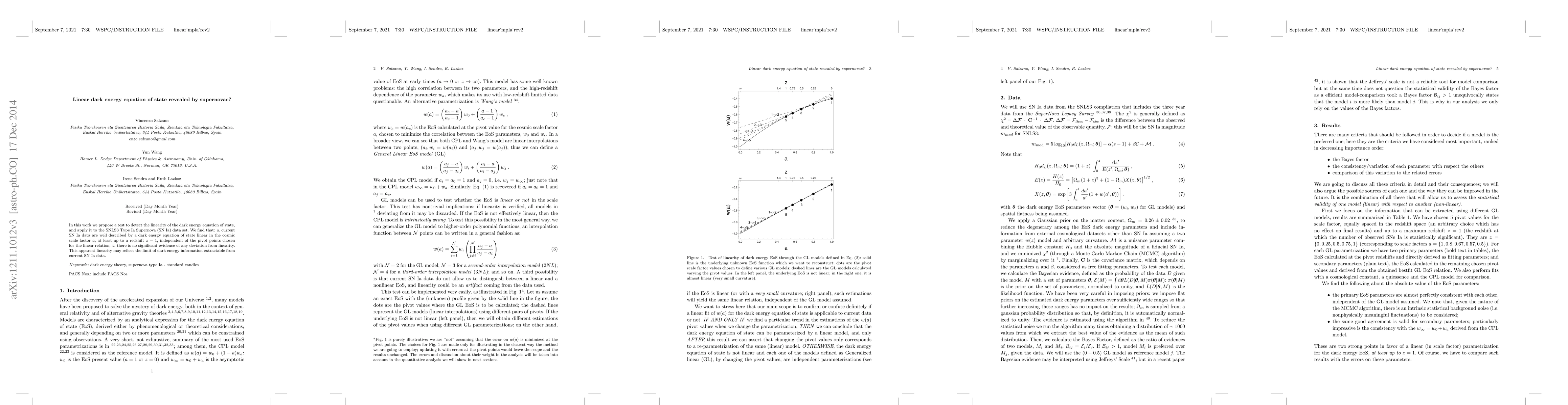 Research finds that dark energy equation of state is linear in cosmic scale factor up to redshift z = 1, with no significant evidence of deviation from linearity.