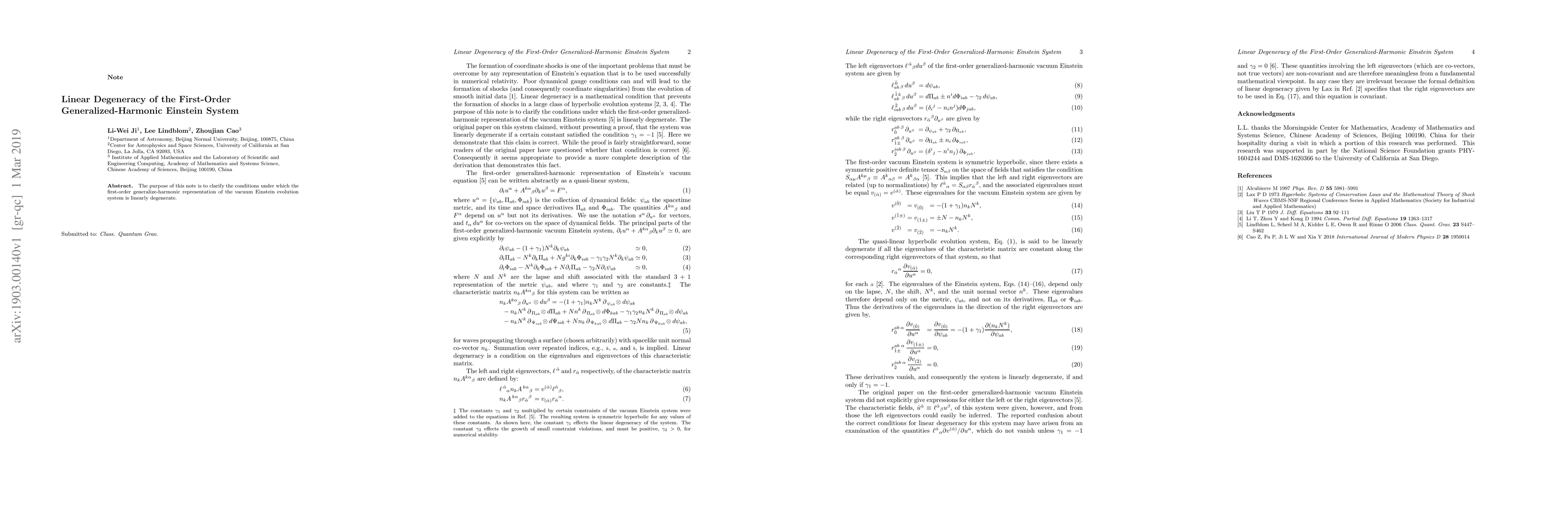 The purpose of this note is to clarify the conditions under which the first-order generalize-harmonic representation of the vacuum Einstein evolution system is linearly degenerate.