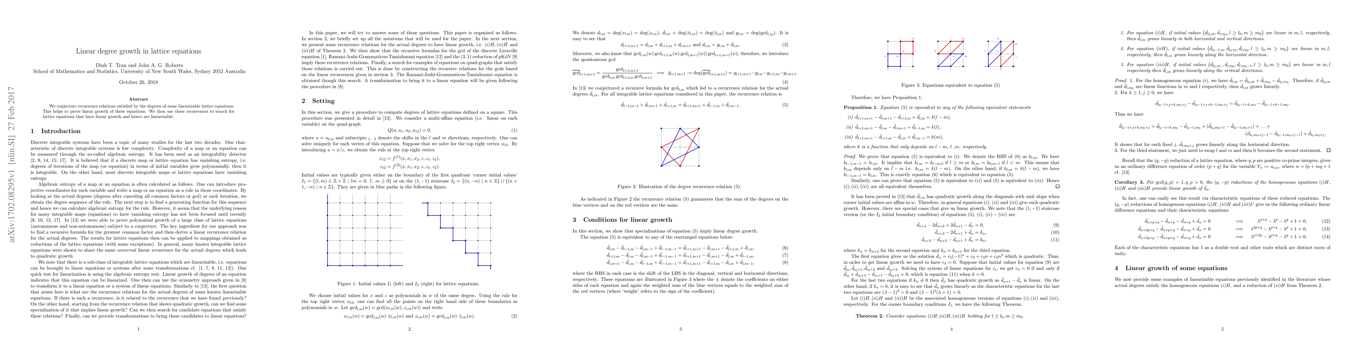 We conjecture recurrence relations satisfied by the degrees of some linearizable lattice equations. This helps to prove linear growth of these equations. We then use these recurrences to search for lattice equations that have linear growth and hence are linearizable.