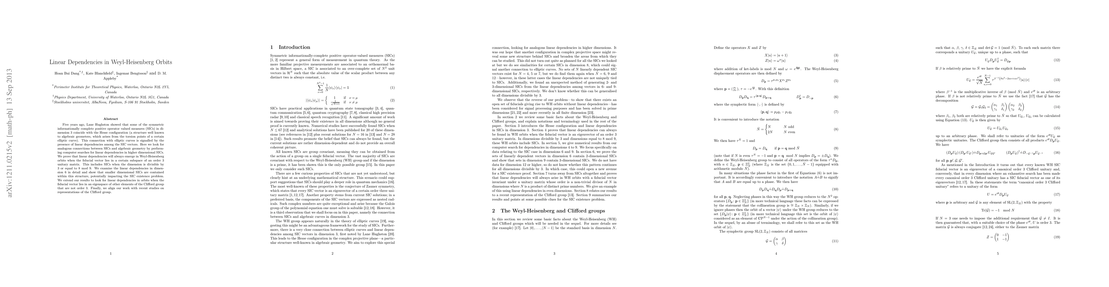 Researchers discovered linear dependencies in Weyl-Heisenberg orbits of symmetric informationally complete positive operator valued measures (SICs) when the dimension is divisible by 3 or equal to 8 mod 9, potentially impacting the SIC existence problem.