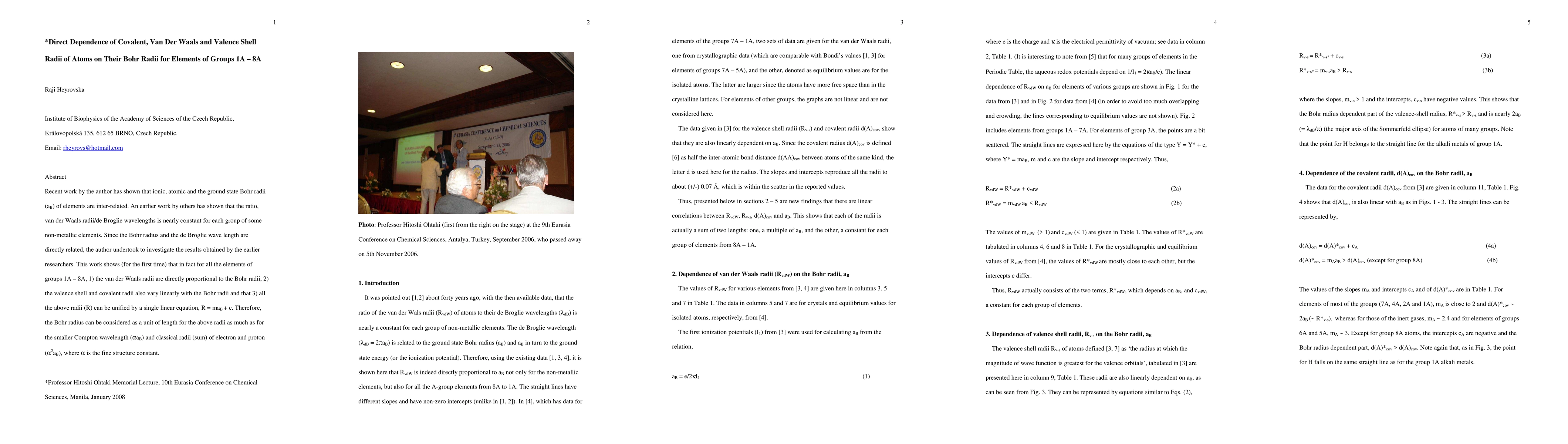 An earlier finding that the van der waals radii are related to their de broglie wavelengths for some non-metallic elements has been extended here to show that in fact, they vary linearly with the ground state bohr radii for all the elements of groups 1a to 8 a. Similarly, the valence shell radii and the covalent radii are shown to be linearly dependent on the bohr radii. One table of data and 5 figures have been provided here showing that all the above radii are sums of two lengths, one of which is a multiple of the bohr radius and the other, a positive or negative constant for each group of elements.