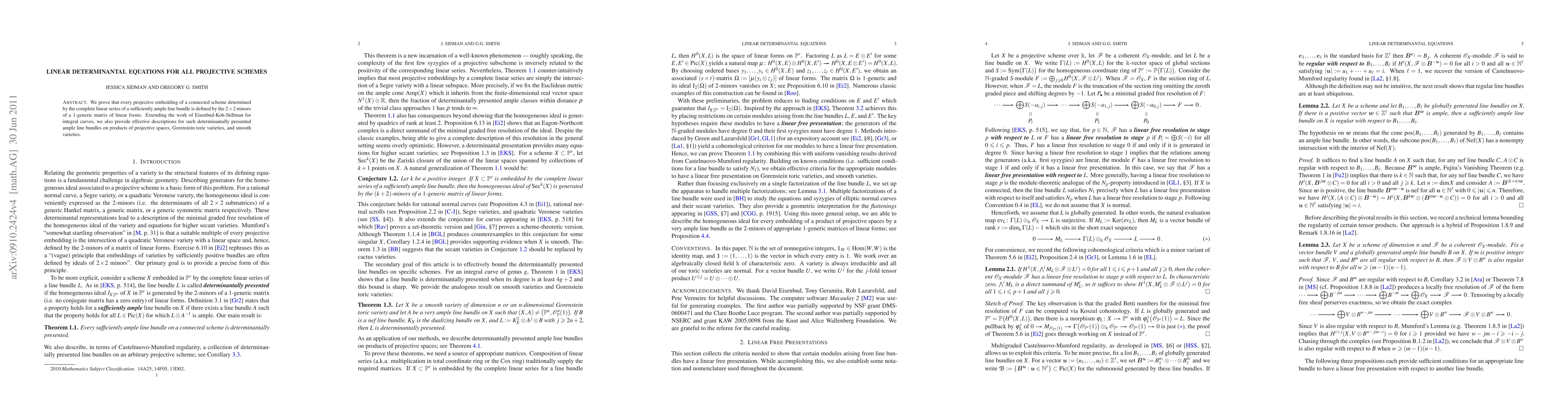 We prove that every projective embedding of a connected scheme determined by the complete linear series of a sufficiently ample line bundle is defined by the 2-minors of a 1-generic matrix of linear forms. Extending the work of Eisenbud-Koh-Stillman for integral curves, we also provide effective descriptions for such determinantally presented ample line bundles on products of projective spaces, Gorenstein toric varieties, and smooth n-folds.