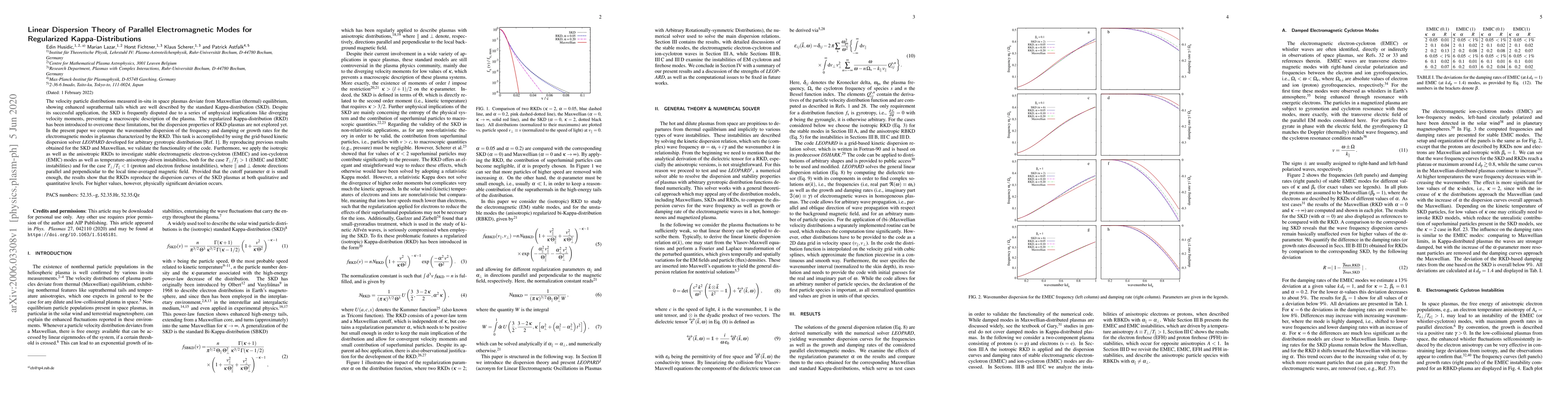 This paper investigates the dispersion properties of electromagnetic modes in plasmas characterized by regularized Kappa-distributions (RKDs) using the LEOPARD dispersion solver. It finds that RKDs can reproduce the dispersion curves of standard Kappa-distributions for small cutoff parameters, but significant deviations occur for larger values.