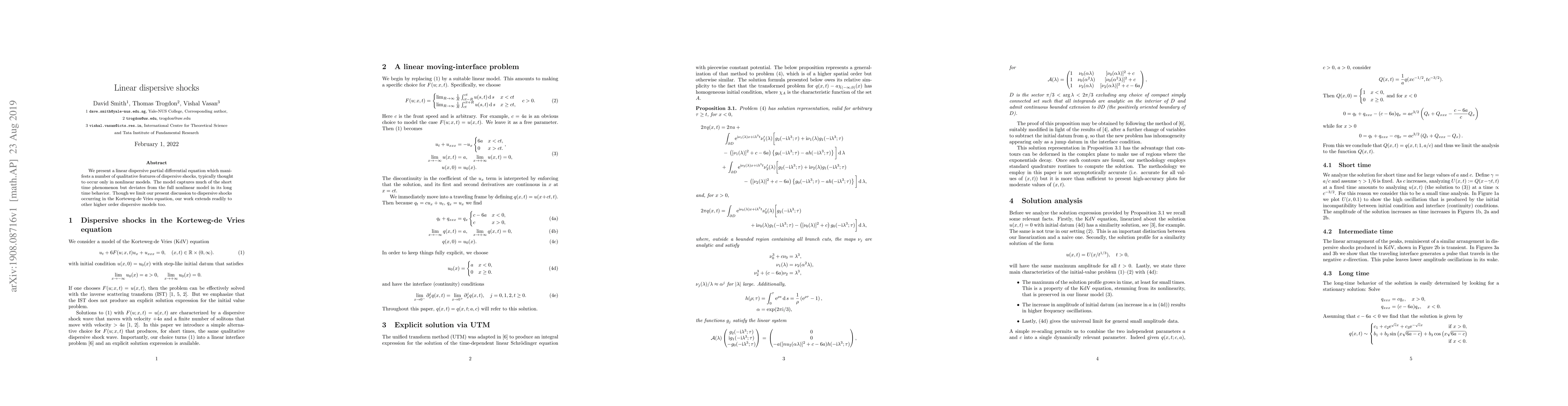 We present a linear dispersive partial differential equation which manifests a number of qualitative features of dispersive shocks, typically thought to occur only in nonlinear models. The model captures much of the short time phenomenon but deviates from the full nonlinear model in its long time behavior. Though we limit our present discussion to dispersive shocks occurring in the Korteweg-de Vries equation, our work extends readily to other higher order dispersive models too.