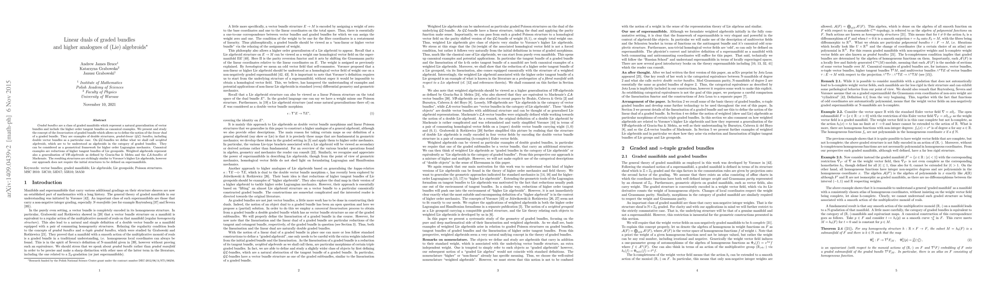 Graded bundles are a class of graded manifolds which represent a natural generalisation of vector bundles and include the higher order tangent bundles as canonical examples. We present and study the concept of the linearisation of graded bundle which allows us to define the notion of the linear dual of a graded bundle. They are examples of double structures, graded-linear ($\mathcal{GL}$) bundles, including double vector bundles as a particular case. On $\mathcal{GL}$-bundles we define what we shall call weighted algebroids, which are to be understood as algebroids in the category of graded bundles. They can be considered as a geometrical framework for higher order Lagrangian mechanics. Canonical examples are reductions of higher tangent bundles of Lie groupoids. Weighted algebroids represent also a generalisation of $\mathcal{VB}$-algebroids as defined by Gracia-Saz & Mehta and the $\mathcal{LA}$-bundles of Mackenzie. The resulting structures are strikingly similar to Voronov's higher Lie algebroids, however our approach does not require the initial structures to be defined on supermanifolds.