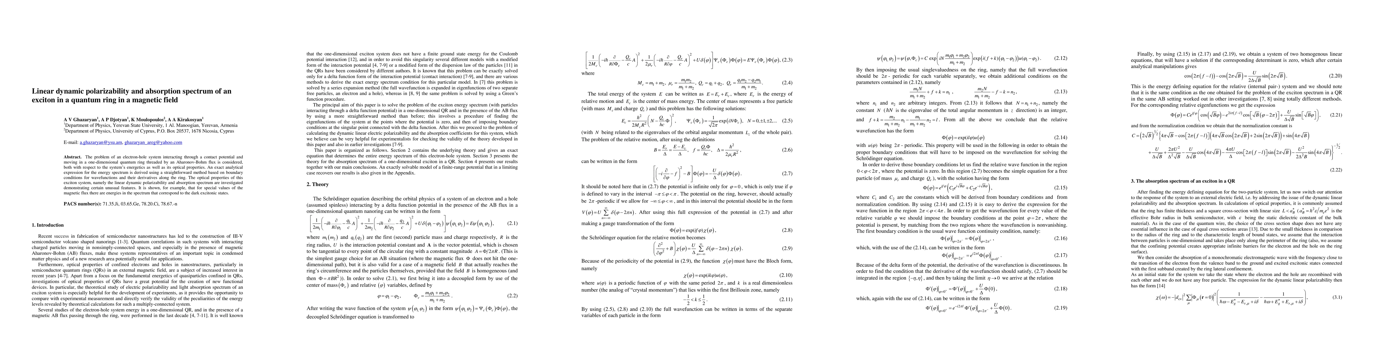 This research derives an exact energy spectrum for an electron-hole system in a quantum ring under magnetic field, using boundary conditions. It also reveals unusual optical properties, including 'dark excitonic states' for specific magnetic flux values.