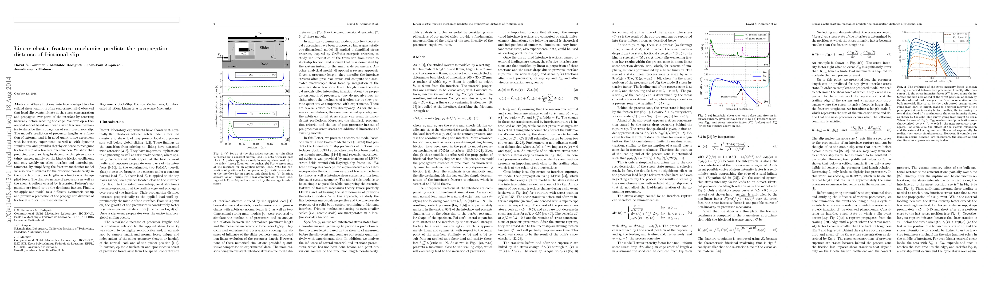 When a frictional interface is subject to a localized shear load, it is often (experimentally) observed that local slip events initiate at the stress concentration and propagate over parts of the interface by arresting naturally before reaching the edge. We develop a theoretical model based on linear elastic fracture mechanics to describe the propagation of such precursory slip. The model's prediction of precursor lengths as a function of external load is in good quantitative agreement with laboratory experiments as well as with dynamic simulations, and provides thereby evidence to recognize frictional slip as a fracture phenomenon. We show that predicted precursor lengths depend, within given uncertainty ranges, mainly on the kinetic friction coefficient, and only weakly on other interface and material parameters. By simplifying the fracture mechanics model we also reveal sources for the observed non-linearity in the growth of precursor lengths as a function of the applied force. The discrete nature of precursors as well as the shear tractions caused by frustrated Poisson's expansion are found to be the dominant factors. Finally, we apply our model to a different, symmetric set-up and provide a prediction of the propagation distance of frictional slip for future experiments.