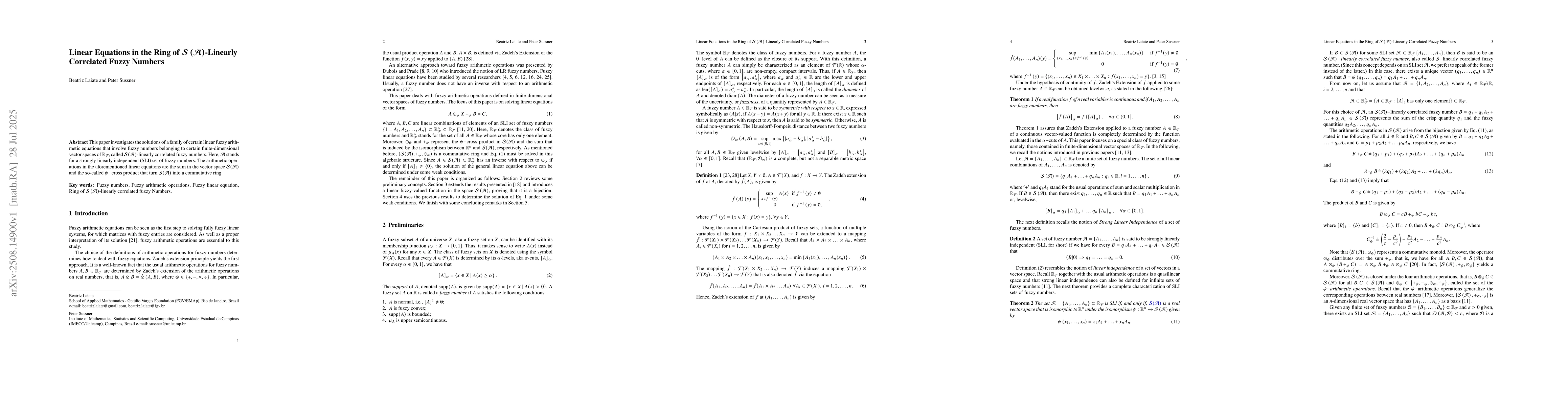 This paper investigates the solutions of a family of certain linear fuzzy arithmetic equations that involve fuzzy numbers belonging to certain finite-dimensional vector spaces of $\mathbb{R}_{\mathcal{F}}$, called $\mathcal{S}\left(\mathcal{A}\right)$-linearly correlated fuzzy numbers. Here, $\mathcal{A}$ stands for a strongly linearly independent (SLI) set of fuzzy numbers. The arithmetic operations in the aforementioned linear equations are the sum in the vector space $\mathcal{S}(\mathcal{A})$ and the so-called $\psi$-cross product that turns $\mathcal{S}(\mathcal{A})$ into a commutative ring.