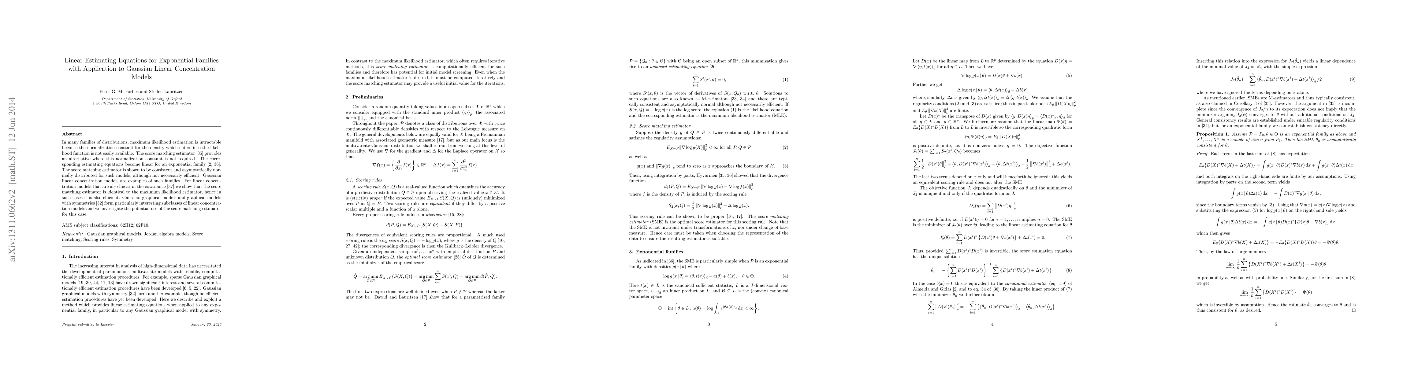 A new estimator for linear concentration models is proposed, showing it to be consistent and asymptotically normal but not necessarily efficient. In specific cases, such as Gaussian graphical models, the estimator equals the maximum likelihood estimator and is thus also efficient.