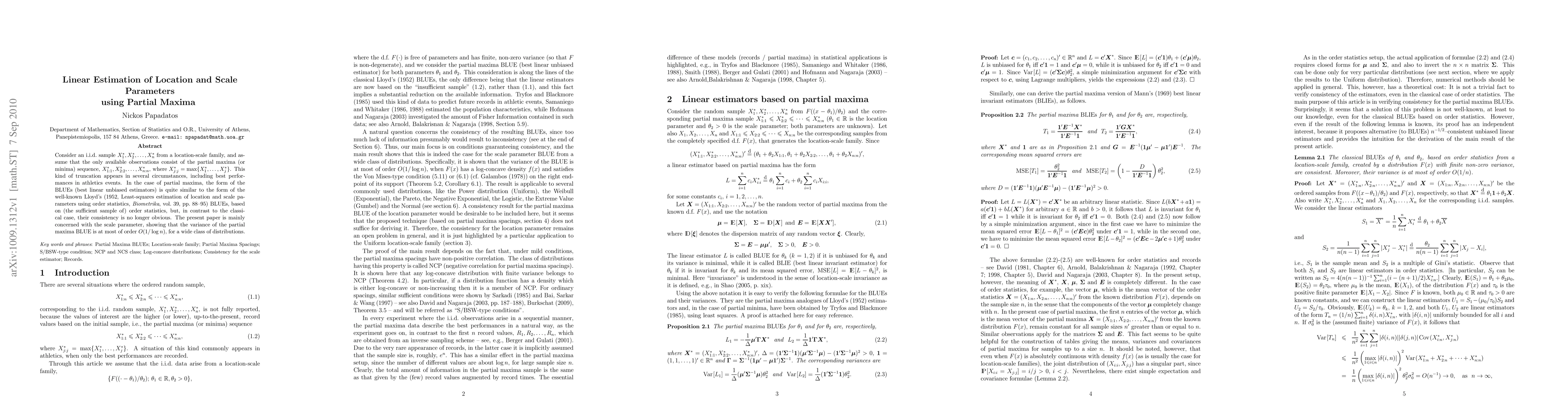Consider an i.i.d. sample X^*_1,X^*_2,...,X^*_n from a location-scale family, and assume that the only available observations consist of the partial maxima (or minima)sequence, X^*_{1:1},X^*_{2:2},...,X^*_{n:n}, where X^*_{j:j}=max{X^*_1,...,X^*_j}. This kind of truncation appears in several circumstances, including best performances in athletics events. In the case of partial maxima, the form of the BLUEs (best linear unbiased estimators) is quite similar to the form of the well-known Lloyd's (1952, Least-squares estimation of location and scale parameters using order statistics, Biometrika, vol. 39, pp. 88-95) BLUEs, based on (the sufficient sample of) order statistics, but, in contrast to the classical case, their consistency is no longer obvious. The present paper is mainly concerned with the scale parameter, showing that the variance of the partial maxima BLUE is at most of order O(1/log n), for a wide class of distributions.