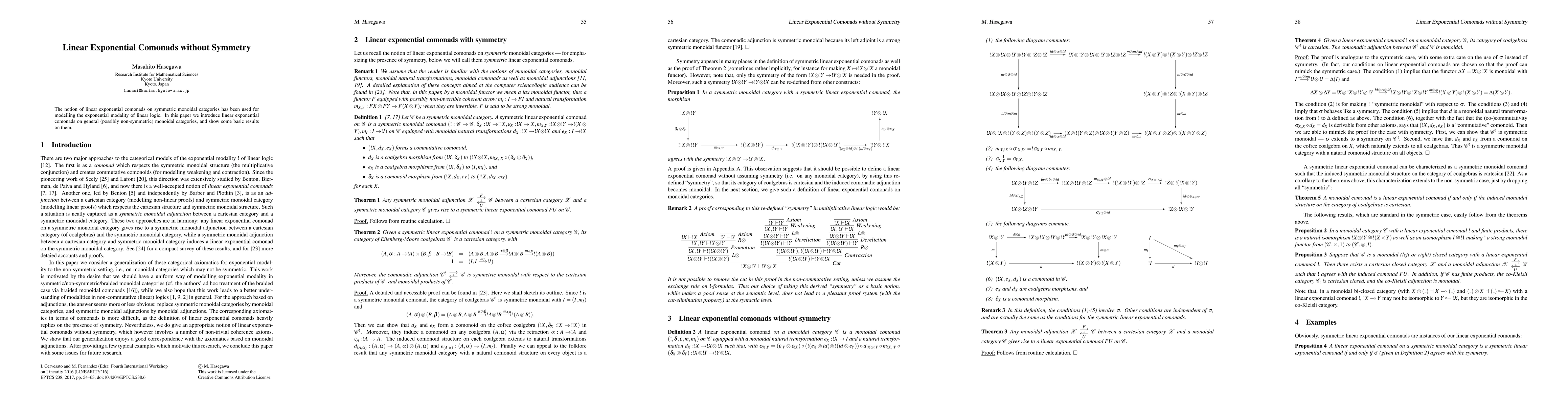 This paper introduces linear exponential comonads in non-symmetric monoidal categories, extending their application beyond symmetric settings, and presents fundamental results regarding their properties.