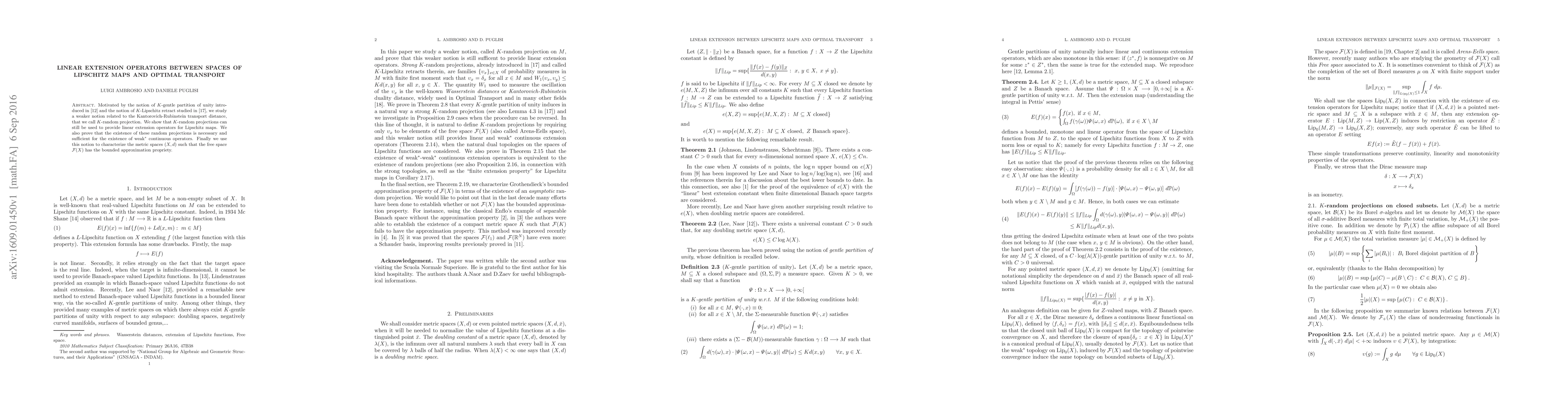 Motivated by the notion of K-gentle partition of unity introduced in [12] and the notion of K-Lipschitz retract studied in [17], we study a weaker notion related to the Kantorovich-Rubinstein transport distance, that we call K-random projection. We show that K-random projections can still be used to provide linear extension operators for Lipschitz maps. We also prove that the existence of these random projections is necessary and sufficient for the existence of weak* continuous operators. Finally we use this notion to characterize the metric spaces (X, d) such that the free space F(X) has the bounded approximation propriety.