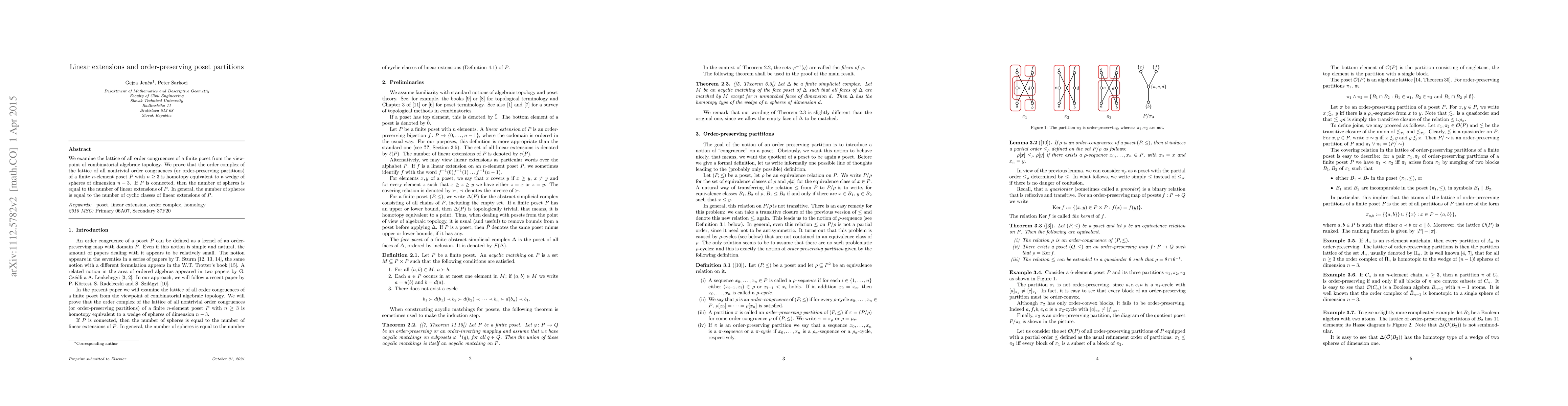 We examine the lattice of all order congruences of a finite poset from the viewpoint of combinatorial algebraic topology. We will prove that the order complex of the lattice of all nontrivial order congruences (or order-preserving partitions) of a finite $n$-element poset $P$ with $n\geq 3$ is homotopy equivalent to a wedge of spheres of dimension $n-3$. If $P$ is connected, then the number of spheres is equal to the number of linear extensions of $P$. In general, the number of spheres is equal to the number of cyclic extensions of $P$.