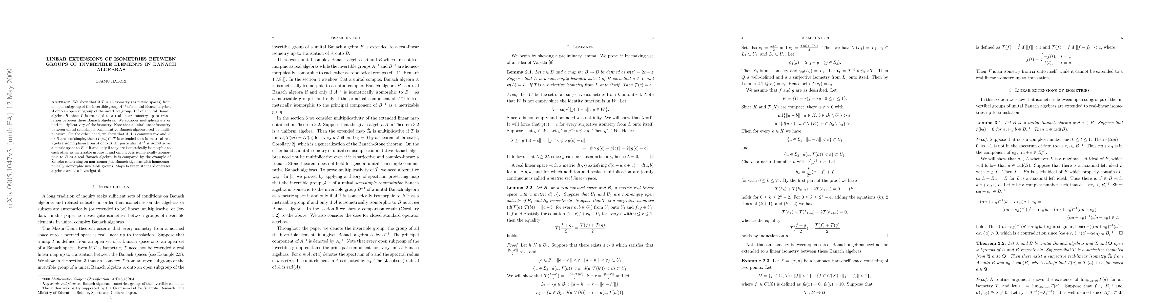 This paper demonstrates that isometries between open subgroups of invertible groups in unital Banach algebras can be extended to real-linear isometries up to translation. It further explores the conditions under which these isometries can be extended to algebra isomorphisms, particularly when the algebras are commutative or semisimple.