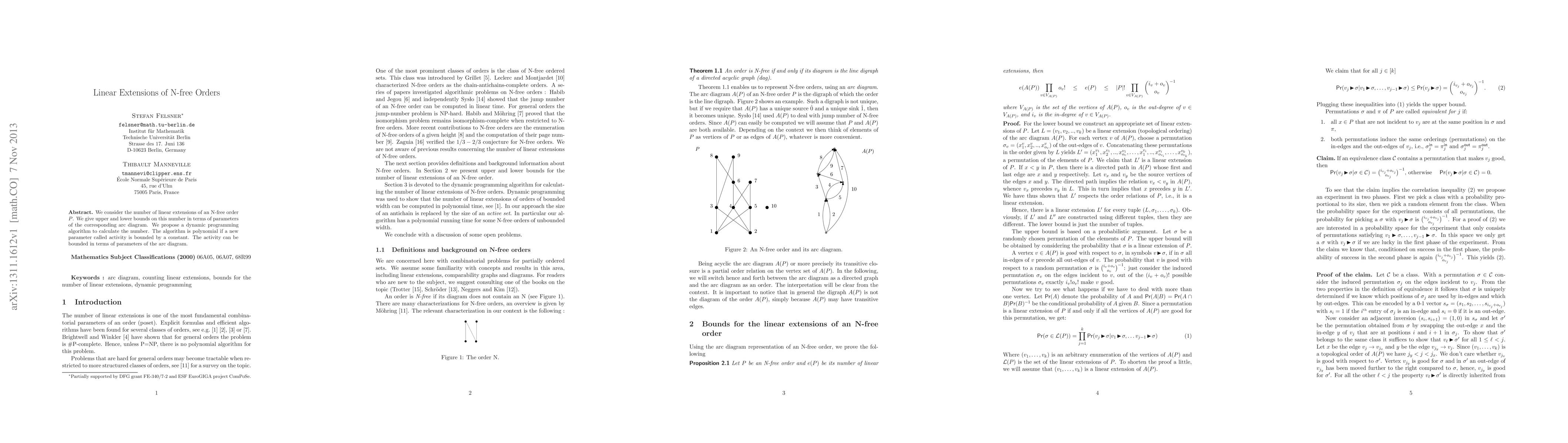 We consider the number of linear extensions of an N-free order P. We give upper and lower bounds on this number in terms of parameters of the corresponding arc diagram. We propose a dynamic programming algorithm to calculate the number. The algorithm is polynomial if a new parameter called activity is bounded by a constant. The activity can be bounded in terms of parameters of the arc diagram.