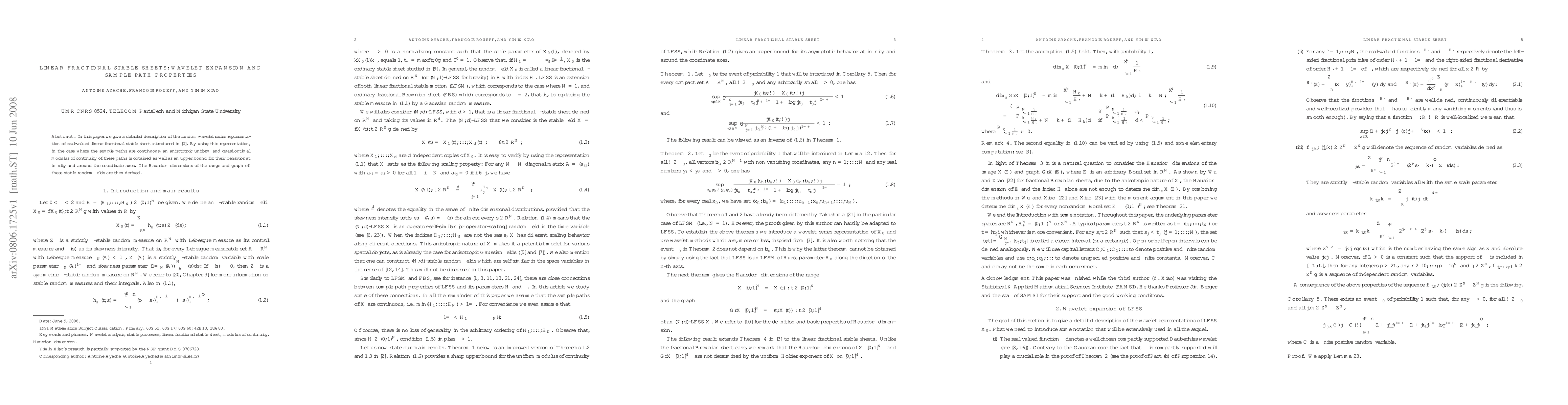 This paper presents a wavelet series representation of linear fractional stable sheets, and uses it to derive a modulus of continuity, bounds on their behavior, and Hausdorff dimensions for their range and graph.